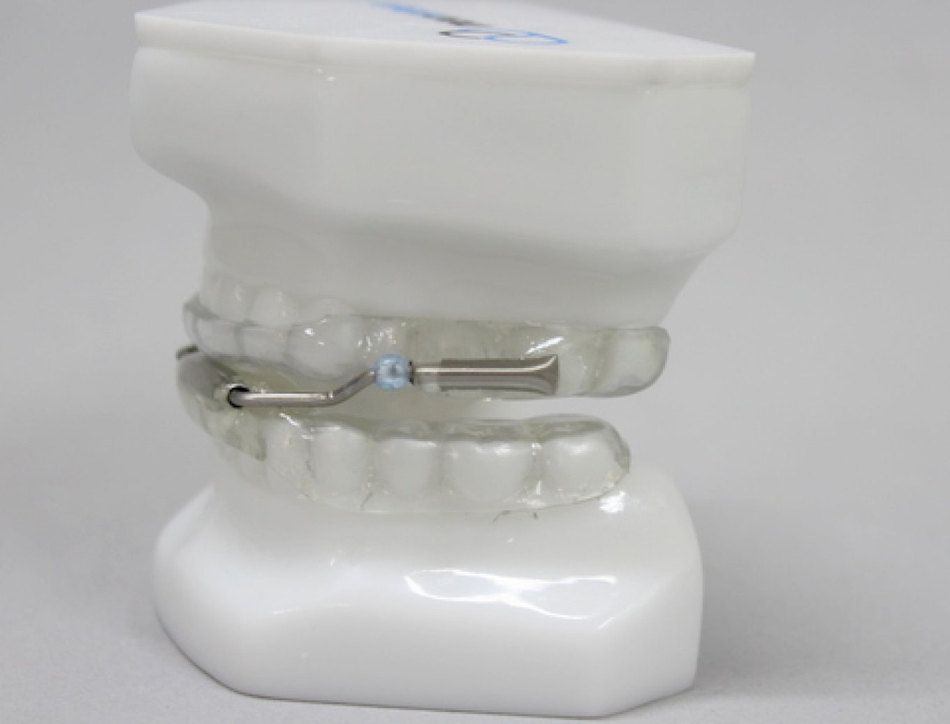 É desmontável, caso o dentista prefira ajustar as placas superior e inferior separadamente