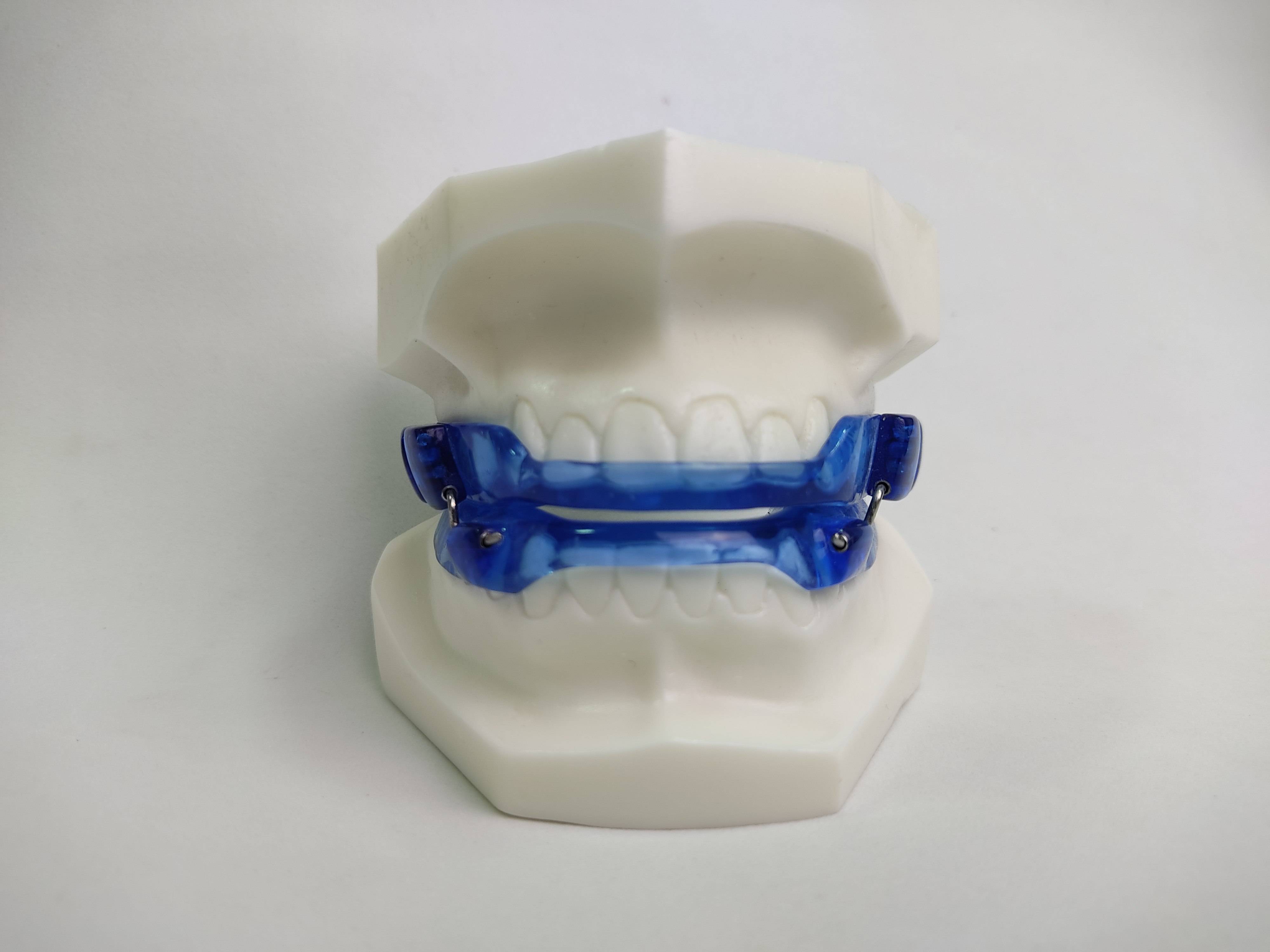 Parafuso expansor pra fazer o avanço mandibular todo recoberto de acrÃlico, com bordas arredondadas e bem polidas