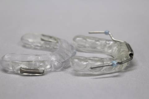 É desmontável, caso o dentista prefira ajustar as placas superior e inferior separadamente