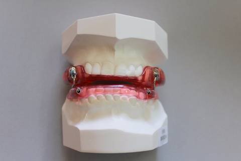 Este aparelho é confeccionado em acrÃlico e com grampos de retenção.