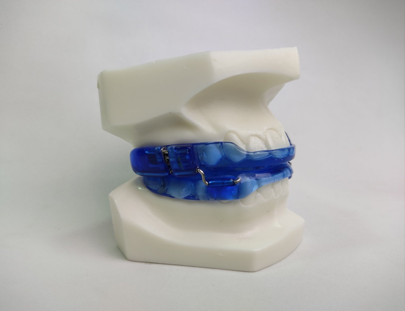 Parafuso expansor pra fazer o avanço mandibular todo recoberto de acrÃlico, com bordas arredondadas e bem polidas